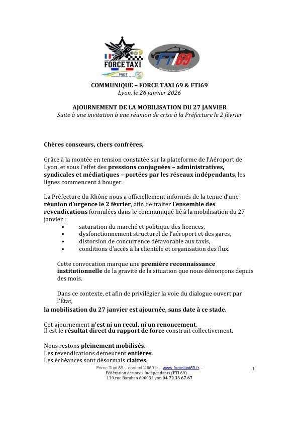 COMMUNIQUÉ – FORCE TAXI 69 & FTI69 🚨